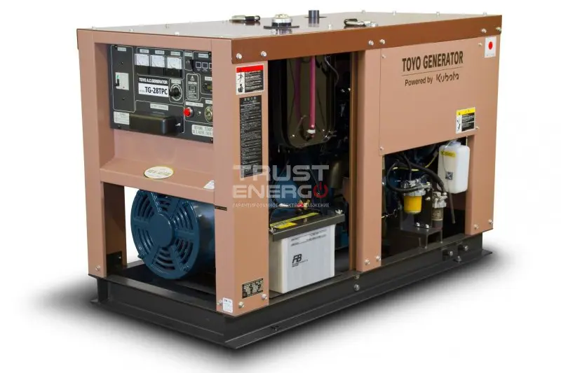 Дизельный генератор Toyo TG-28TPC с АВР номинальной мощностью 16 кВт с двигателем Kubota - отличный электроагрегат демонстрирующий уверенный приём нагрузки как резервный источник питания, так и основной.